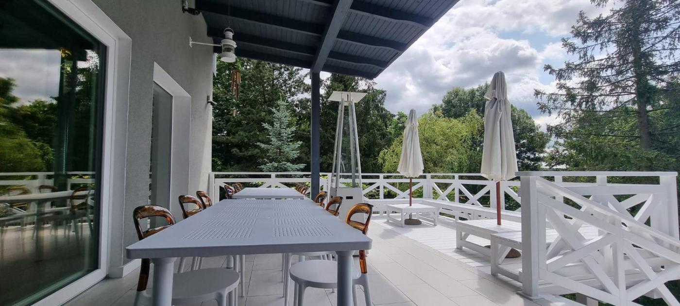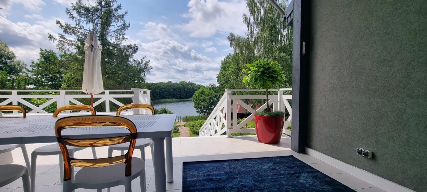 😎 Dostępny duży i zadaszony taras z widokiem na jezioro